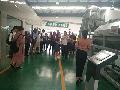 剛果政府官員一行興致勃勃的參觀了湘豐裝備多功能茶葉加工工藝生產線與智能化生產車間,并對我司茶葉多功能設備產生了極大的興趣以及設備專業性提問,并希望我司產品能銷往剛果國際市場。