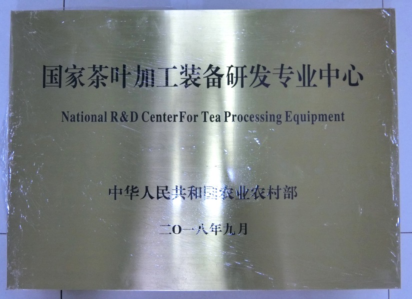 2018年10月我司獲評中華人民共和國農業農村部:“國家茶葉加工裝備研發專業中心”。
