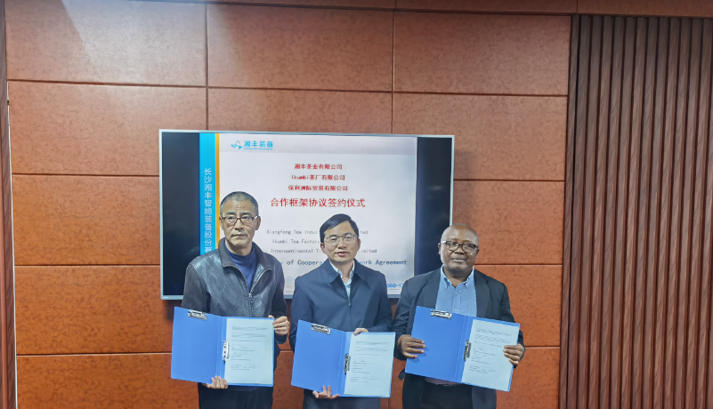 肯尼亞茶葉發(fā)展局(KTDA)東部裂谷區(qū)的董事Charles Mwangi、第二區(qū)域董事/董事會成員James Githinji Mwangi、Ikumbi茶葉工廠有限公司董事會主席Onesmus Francis Kibuna等7人與我司洽談智能茶葉加工裝備的采購、新產(chǎn)品的開發(fā)及拓品。經(jīng)過此次商貿(mào)訪問交流和深入了解,雙方簽約了《合作框架協(xié)議》。