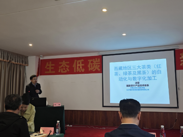 2024年10月10日-12日在西藏林芝市易貢茶場舉行了全國生態低碳茶集成創新現場會。參會人員觀摩了林芝易貢茶場生態低碳茶生產技術田間示范情況,現場展示水肥一體化、無人機施肥、茶園間作綠肥、蟲害智能化監測等關鍵技術及裝備,參觀了茶葉加工廠紅綠茶連續化、清潔化生產線運行情況,并舉行了專家報告會。其中我司首席科學家、中南大學教授湯哲作《西藏地區三大茶類的自動化與數字化加工》報告。與會專家就西藏茶產業發展及課題工作進行了深入交流發言。
